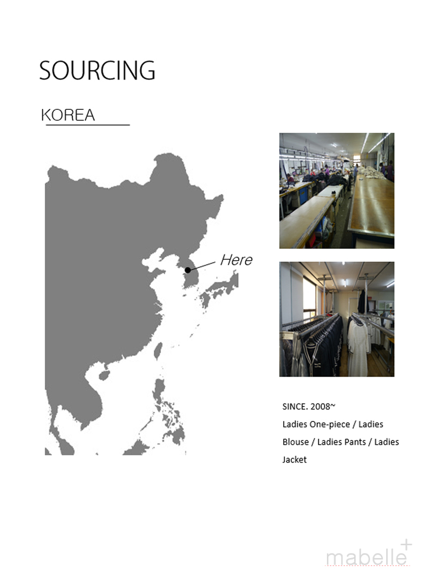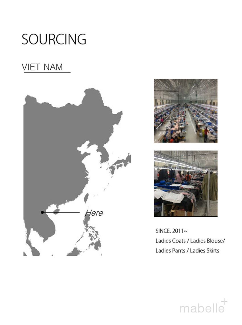 It is a company that sources designs to Korean women's clothing and produces and delivers finished products. It is produced in Korea, China, and Vietnam.